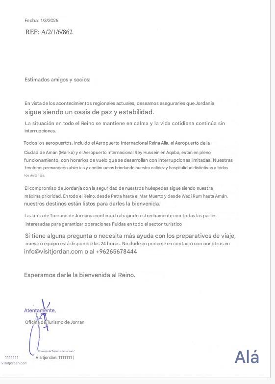 Jordan Horizons Tours se complace en compartir las últimas actualizaciones de viaje con respecto a los tours operados dentro del país.